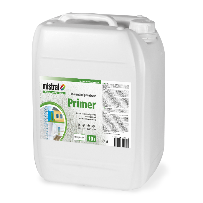 Penetrační nátěr pod akrylátové, silikonové, siloxanové, latexové interiérové i fasádní barvy, akrylátové tmely a stěrky, sjednotí povrch a sníží nasákavost, zvýší přilnavost následného nátěru
